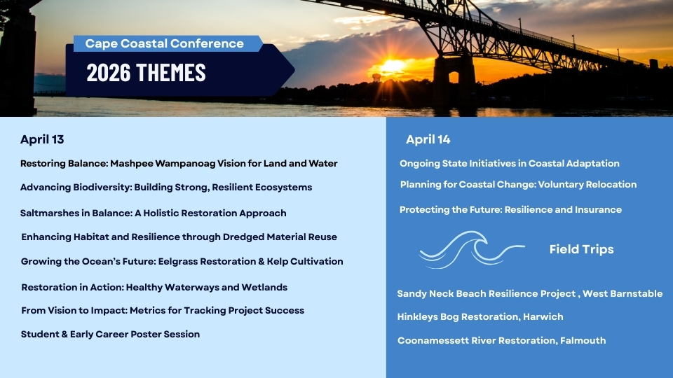 Take a step beyond the conference sessions and experience Cape Cod’s ecological restoration and resiliency efforts firsthand. These optional field trips offer a rare opportunity to see the tangible results of years of planning, collaboration, and innovative conservation work. Attendees will drive themselves from Hyannis to the field locations. Participants may select one field trip during registration; however, space is limited.